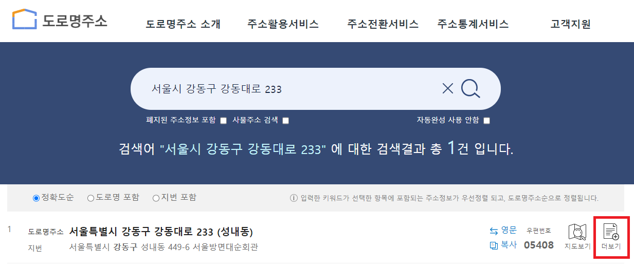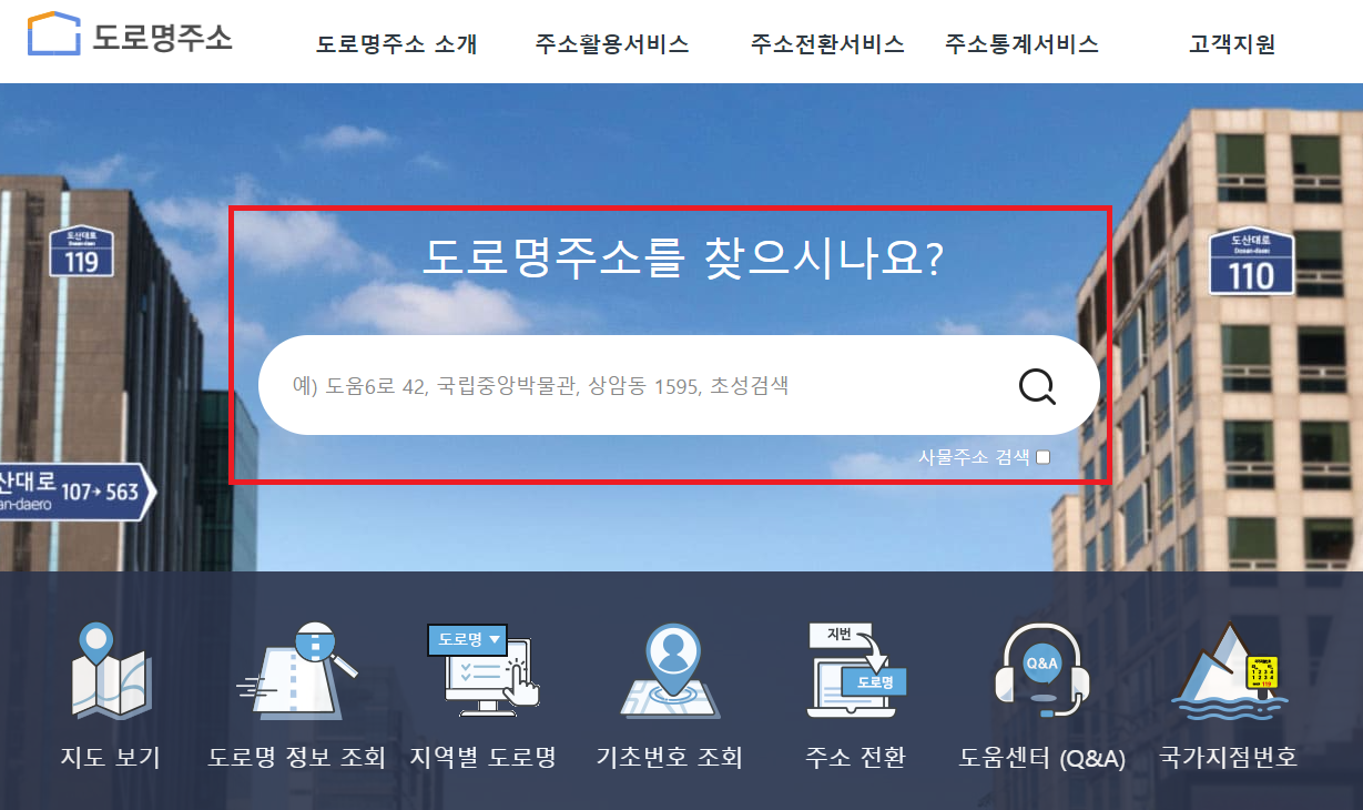 1. 도로명 주소찾기에서 도로명 주소를 찾습니다.