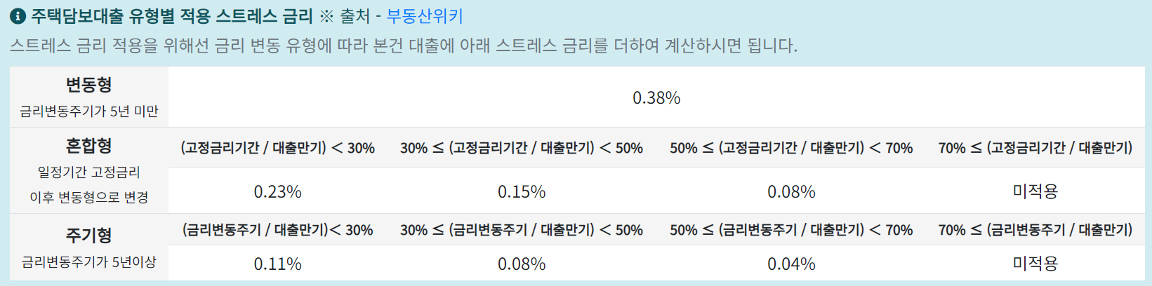 스트레스 금리 산정방식